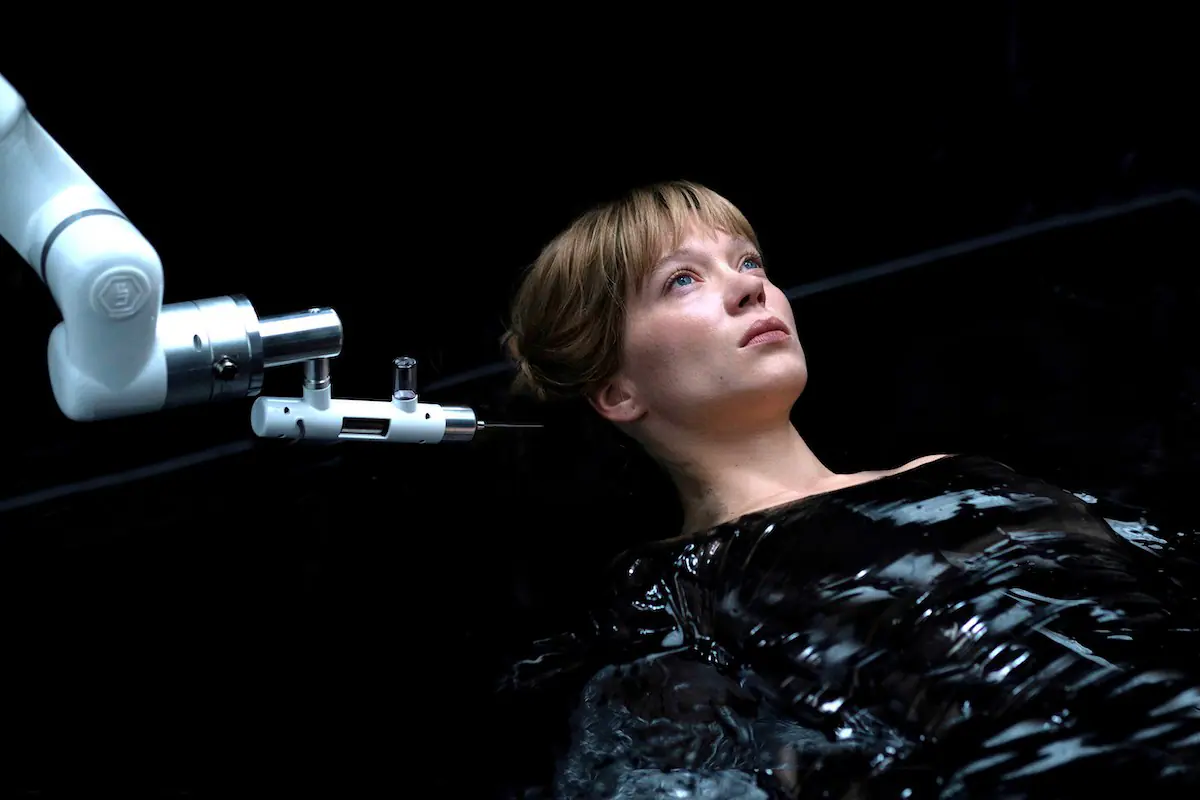 この映画の幕開けでは、背景合成用の「グリーンスクリーン」の前で、レア・セドゥが演