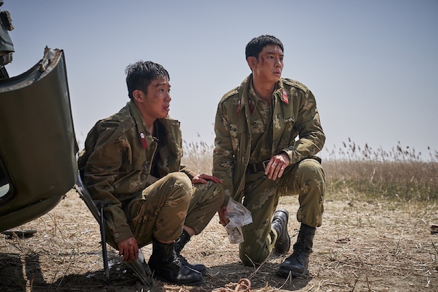 あわせて公開された場面写真では、ギュナムに向けてヒョンサンが拳銃を突きつける危機一髪シーンのほか、脱走兵を追っているにも状況下にもかかわらず、髪の毛をくしでとかすヒョンサンの姿などが切り取られている。また、血だらけにもかかわらず、頼りになる表情を見せるギュナムと、不安そうな面持ちのドンヒョクという“脱北2トップ”を写したカットや、“ヒョンサンの人生に決定的な影響を与えるキーパーソン”という、ソン・ガン演じる謎の人物の動向も捉えられている。