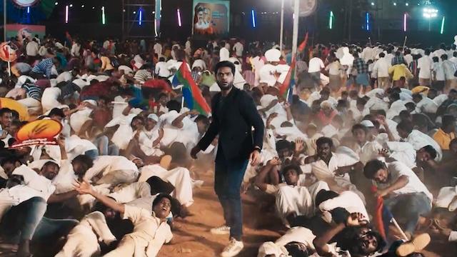 さらに一歩間違えば複雑すぎる話になりそうだが、最後までアクションとサスペンスで観客を置いてけぼりにはしない。これは本作が勧善懲悪としての構造を徹底的に守っているからであろう。シンプルな構造を守れているのは、「州首相の暗殺を阻止せよ」という分かりやすい目的に加え、S・J・スーリヤーが演じる悪役、ダヌシュコディの存在が大きい。スーリヤーは傑作『ジガルタンダ・ダブルX』(2023年)にて、ハッタリだけでギャングと張り合う青年を熱演したが、今回は一転してド直球の極悪警官を好演している。怒りっぽく、絶妙に器が小さく、すべての意味で非常に分かりやすく悪い(それでいてちょっと笑えるのが凄い)。極端な話をすれば、少し話についていけなくても、「今、この人が怒っているということは、主人公サイドはイイ感じなのね」と把握できる、映画内の人間コンパスみたいな役割を果たしている。