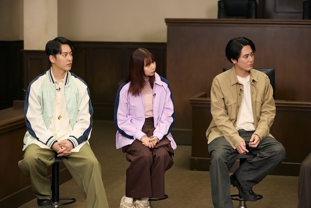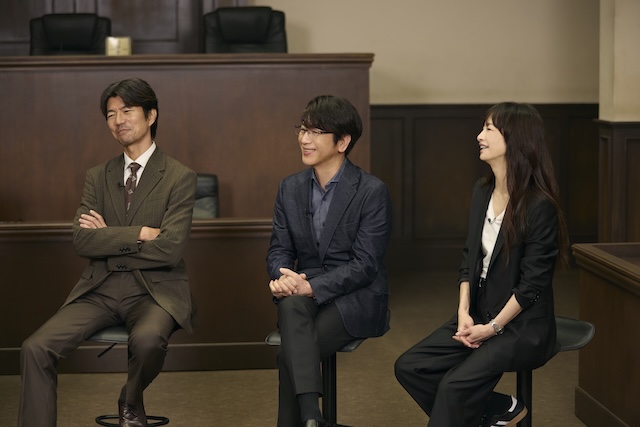 座談会に参加したのは、主人公・宇崎凌を演じる間宮を筆頭に、ピース法律事務所に所属する弁護士の伊野尾麻里を演じる上白石、高井戸斗真役の三山、所長である轟謙二郎役の仲村。そして、轟の協力者である弁護士の桐石拓磨を演じる及川、情報提供を行う刑事の浅見涼子役のりょうも加わった。