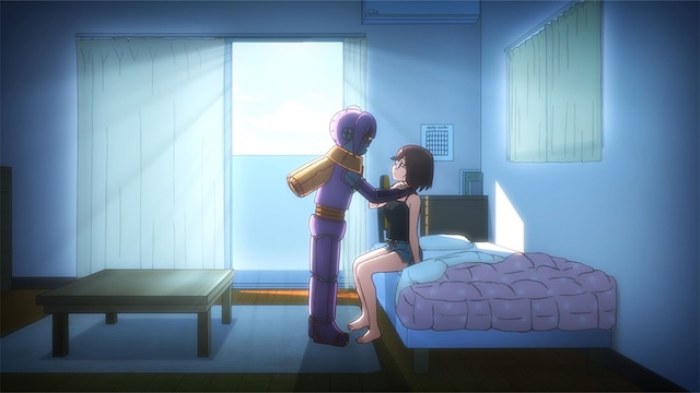 第5葉「ロボットと殺し屋のふたりぐらし」(絵コンテ:徳留夢奈・吉澤翠/演出:徳留夢奈・吉澤翠)は、こうした寓話性を最も明快に提示したエピソードだった。この回では、発明家兼殺し屋のイヅツミマリンが新たに登場し、さとこを模したAI搭載型ロボット「ロボ子」をこのはのもとに送り込む。いかにもシャフトらしい大胆なカット割りと、ユーモアとアイデアに満ちた演出によって、この奇妙なドタバタ劇はリズミカルに展開されていく。