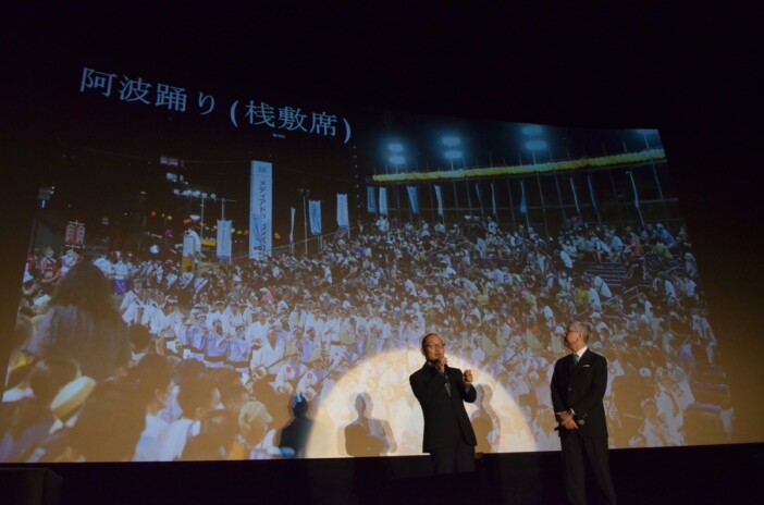 大歩危小歩危では、ドローンを飛ばして龍の飛翔感を体験。さらには「徳島は食事もおいしかった」と懐かしみ、「阿波踊りも取材させていただきましたが、『とても美しい』という感想です。女踊り、男踊りのバランスが非常によくて、眉山のふもとで不思議な世界を体験することができました。これは行ってみないと体験できないと思うので、みなさんも是非」と呼びかけた。