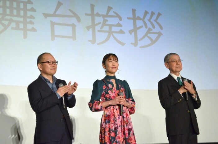 大きな拍手に包まれ登場した今掛は、「この日を待ちわびておりました」と感慨深げに挨拶。大田は物語にちなみ、「閻魔様に叱られないよう、初日の舞台挨拶の使命をしっかり果たしたい」とユーモアを交えて意気込んだ。
