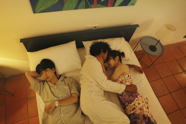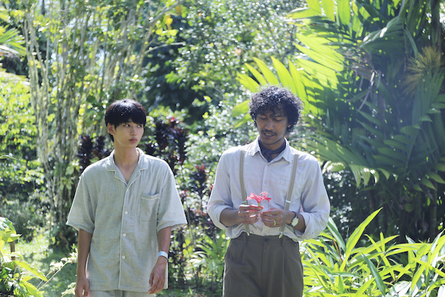 また、聡太郎とミミの出会いを捉えたカットをはじめ、3人でベッドに寝転がる意味深なカット、“異国の島”の自然の中を歩く聡太郎とダニエル、そして、不思議な表情で上を見上げる優佳(福地桃子)のカットなど11枚の場面写真も公開された。