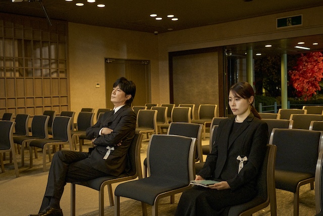 あわせて公開された場面写真では、福山演じる武史が兄・英一の葬儀の場で華やかなマジックを見せる姿と常にコインを指の上で滑らせている、まさにマジシャンらしい様子が写し出されている。また、有村演じる真世の華やかなウエディングドレス姿や武史の推理を真剣なまなざしで聞いている様子や、英一が巻き込まれた事件について語り合う2人の姿が収められている。