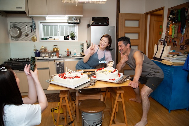 午前中の撮影を終え、しばし休憩……という瞬間、内野と吉川がそれぞれ大きなケーキを持って登場。鈴木のイラストや番組ロゴ、そして本作に欠かせない救難ヘリコプター・UH-60Jがあしらわれた2つセットの特製巨大ケーキを前にした鈴木は、「なんて素敵なケーキ……! 皆さんでいただきましょう」と大喜び。すると、内野が「もう手づかみでいっちゃってください(笑)」と笑わせる。現場が大爆笑に包まれる中、鈴木は「こんなお祝いをしていただけるなんて……うれしいです!」と喜び、ケーキに描かれた自身のイラストを見て「似てる!(笑) 本当にありがとうございます」と、笑顔の様子。その後の記念撮影では、ケーキがよく見えるようにと内野が構図を提案し、自らカメラを持って撮影もするなど、現場は終始温かい空気に包まれていた。