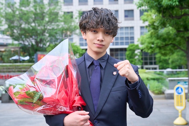 桐谷から花束を受け取ってハグを交わした氷室海斗(渋谷勇気)役の宮世琉弥は「こういうサイコパスで感情がぐちゃぐちゃになるような役が初めてで、すごく刺激的な日々の撮影でした。ヒーローを題材にした作品がいろいろある中で、新しいヒーロー像を描いた作品をみなさんと一緒に作れたことがうれしいですし、最終回までたくさんの方に観ていただいて、この作品のメッセージがしっかり皆さんに届くといいなと思っています」と語った。