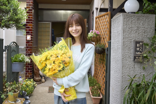西郡十和子役の板谷由夏は監督から花束を受け取ると、「わあ! 芍薬大好きです私」と笑みをこぼす。「すごく楽しい現場でした。スケジュールもタイトな中大変だったと思いますが、すごい良いチームだったと思います! いつか、ご縁がありましたらまた一緒に現場で会えますように」とにこやかにスタッフらと集合写真を撮影。