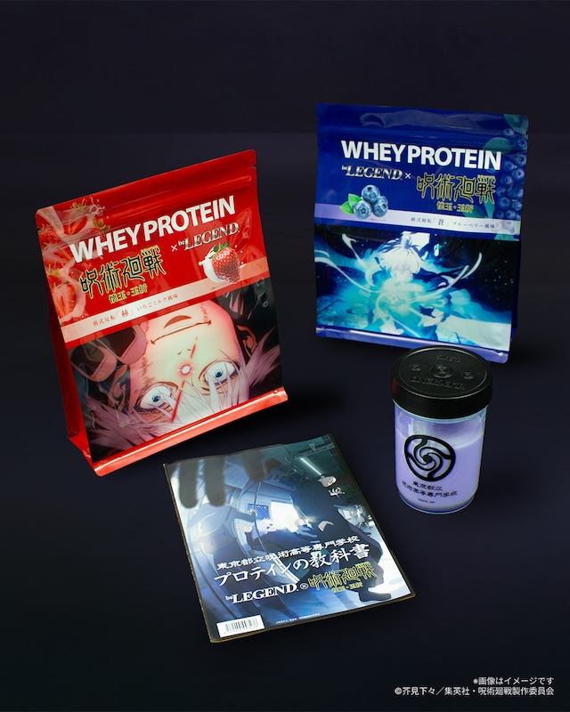 さらに、公式オンラインストア限定で、購入者を対象に「虚式『茈』 ミックスベリー風味」の作り方や、プロテインをより美味しく楽しむための情報をまとめた「東京都立呪術高等専門学校 プロテインの教科書」が付属する。