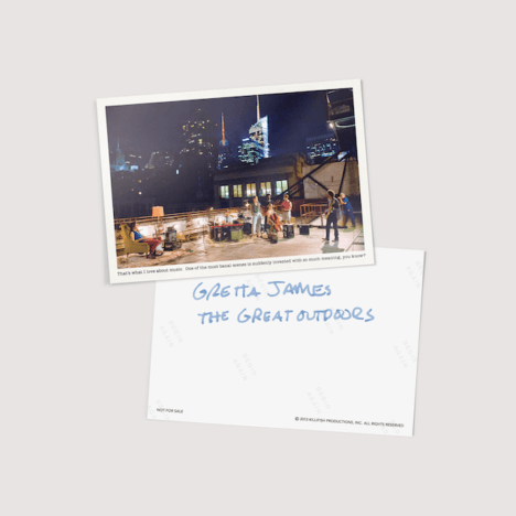 また、公開日からは入場者プレゼントとして「L判フォトカード」が数量限定で配られることが決定。表面にはダンの名台詞、裏面には劇中で2人がアルバムをリリースする際に使用していた手書き文字が記されている。
