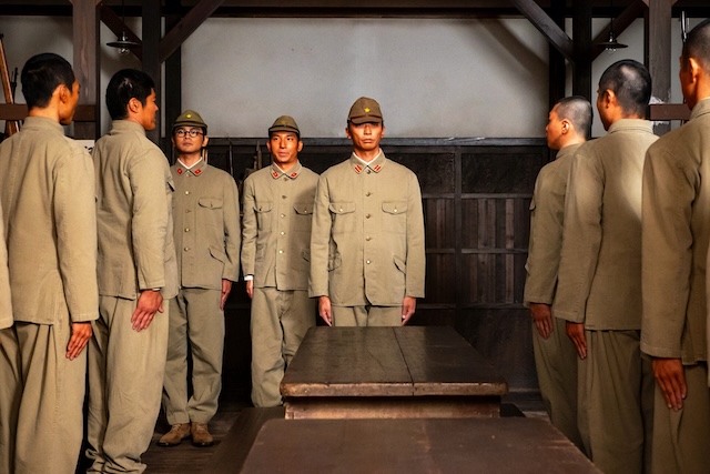 奥野が演じる神野は、嵩が所属することになった内務班の班長。嵩ら初年兵だけでなく古年兵のことも容赦なく殴りつける、まさに“鬼軍曹”という言葉が似合いそうな人物である。