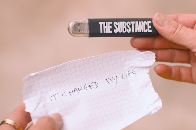 フレッドとのデートの準備があんなことになってしまったのは、フレッドが自分に何かを言ったからではない。自分の部屋から見えるビルボードに映るスー、つまり広告に映る女性の“イメージ”と現実の自分の乖離に悩まされたからである。愛されるためには若くて痩せていて綺麗でなければいけない。エアロビをクビになった経緯やハーヴェイが吐いた言葉が、彼女に強迫観念を植え付け、サブスタンスの注入に至った。そしてスーとして再び自己肯定感を高めることができても、エリザベスが抱える問題は解決できない。