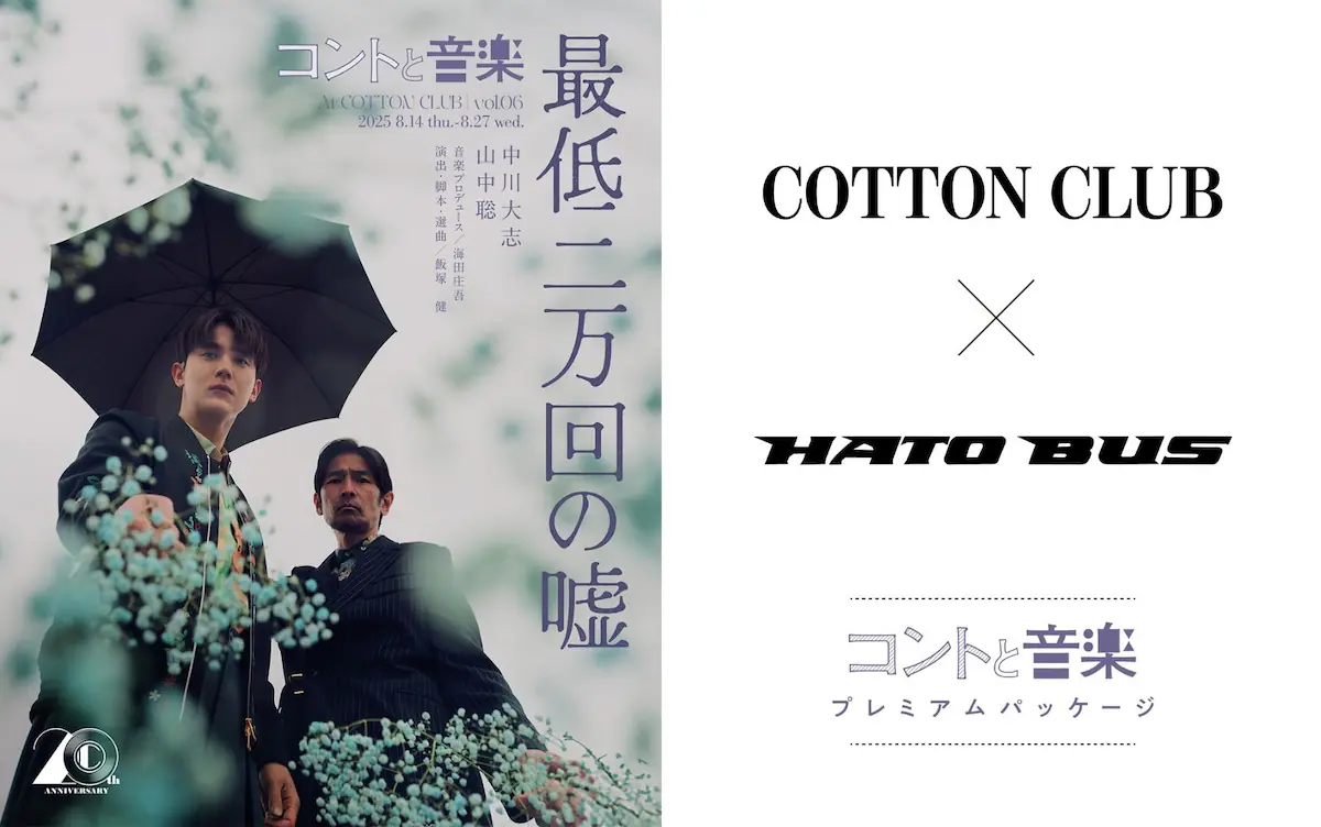 COTTON CLUB開業20周年を記念して、はとバスとの初コラボレーション企画「COTTON CLUB × はとバス 『コントと音楽』プレミアムツアー」の開催が決定した。