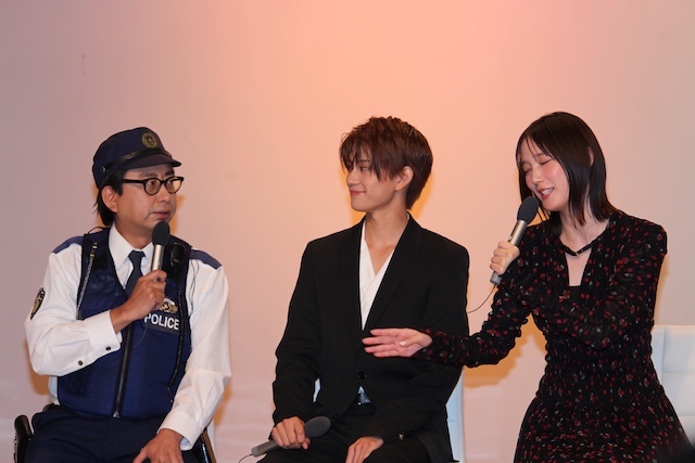 “事情聴取”と題したトーク企画も行われ、司会の小田がキャストの裏話を深掘り。志田が「仲良くなりたくて“ほんつば”と呼びかけたのにスルーされた」と暴露すると、本田は「聞こえていたけど、まだ距離感をつかみかねていた」と弁明。その流れから「おはようじ」(岩瀬)、「がんばりましこ」(増子)など、それぞれに付けられたニックネームの話題でも大盛り上がり。志田に関してはあだ名がなかったため、本田が前日の夜に考えたという「おしだ」と命名。志田も「気に入りました」とノリよく受け入れ、チームワークの良さを感じさせた。