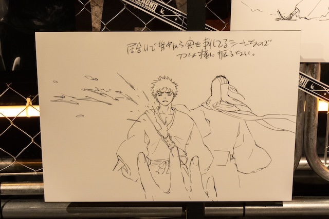 20周年記念として制作されたこのMVは、歴代OP・EDのオマージュカットがちりばめられ、まさにTVアニメ『BLEACH』の歴史そのものだった。展示では、その制作過程や設定画が公開されており、クリエイターたちの『BLEACH』への愛情が随所に感じられた。