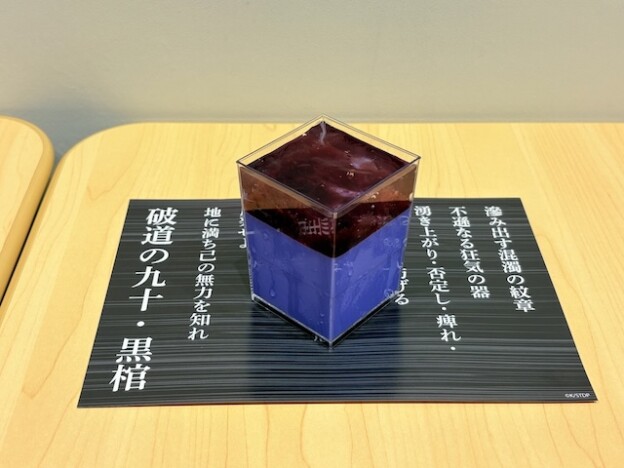 メニューを見て思わず笑ってしまった。「敵襲だ 先ずは紅茶でも淹れようか」プレートや、「逆様邪八宝塞パフェ」など、ファンのツボをおさえたネーミングが並ぶ。しかし、最も興味深かったのは「破道の九十・黒棺」だ。