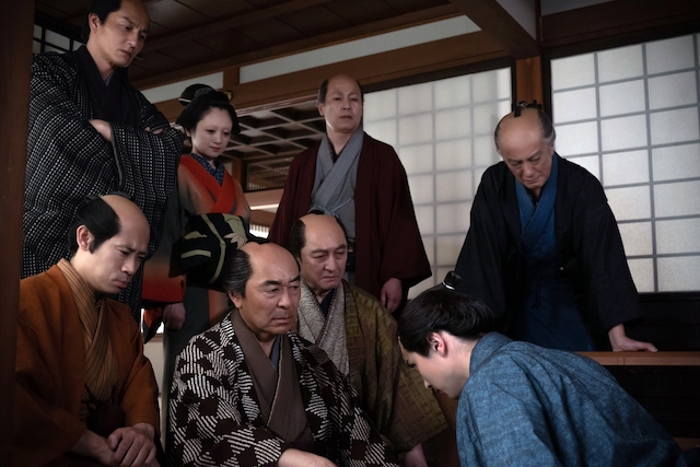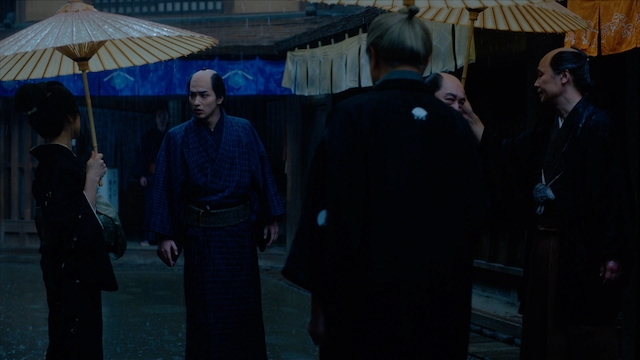 その後の「父」駿河屋との、階段から突き落とされても這い上がり談判する場面は、これまで幾度も繰り返されてきた「獅子は我が子を千尋の谷に落とす」さながらの親子愛に、親離れ・子離れの儀式も加わって、蔦重が吉原という生まれ育った土地を出る、ひとかたならぬ覚悟を描いた。また、その少し前、雨の中の蔦重の場面からその場面までをひと続きのものとして捉えると、吉原の人々が不当に受け続ける差別という「雨」ごと、もしくは彼らが「吉原もん」として他の人々と異なる場所に座らされた屈辱ごと、蔦重が背負って這い上がっていく姿にも見えてくるのである。