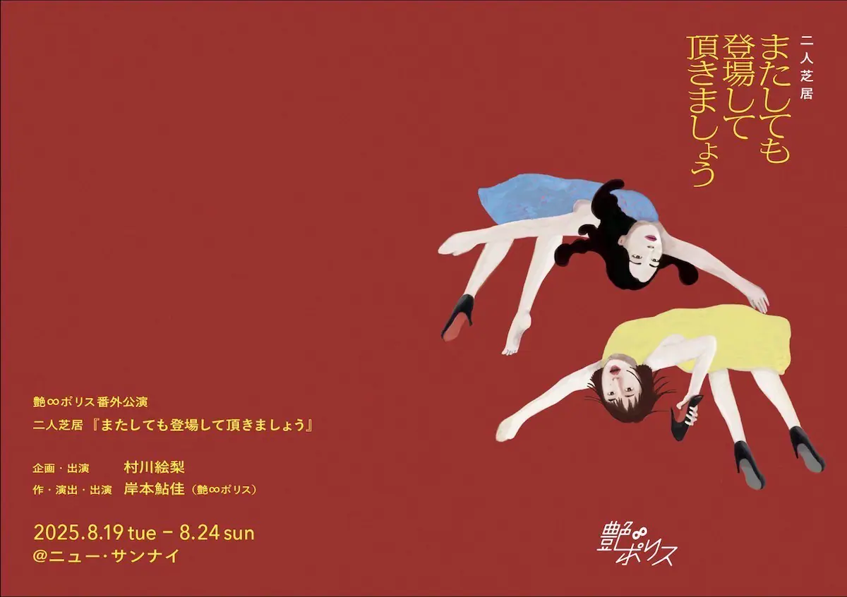 村川絵梨と艶∞ポリス主宰岸本鮎佳による二人芝居『またしても登場して頂きましょう』が、8月19日から8月24日にかけてニュー・サンナイにて上演されることが決定した。