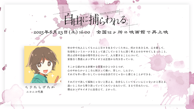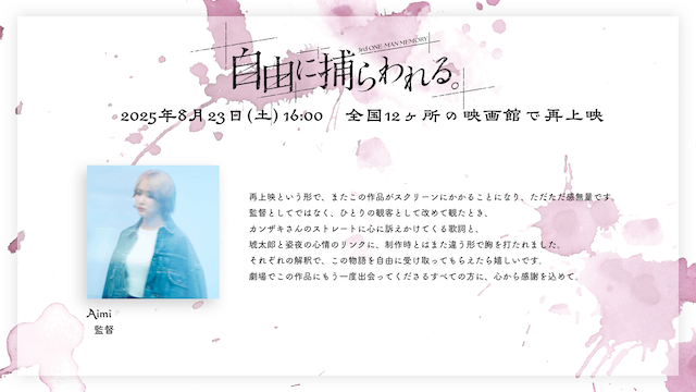 カンザキイオリ『自由に捕らわれる。』再上映、チケットプレオーダー受付開始
