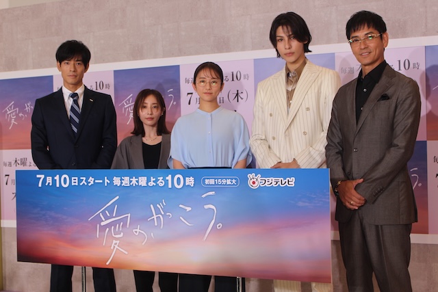 木村文乃が主演を務めるフジテレビ系木曜劇場『愛の、がっこう。』の制作発表が、7月8日にフジテレビ湾岸スタジオで開かれ、木村をはじめ、共演のラウール(Snow Man)、田中みな実、中島歩、沢村一樹が登壇した。