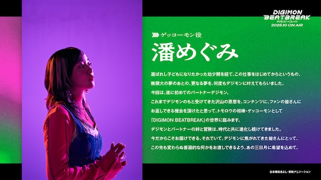 10月より放送開始されるTVアニメーション『DIGIMON BEATBREAK(デジモンビートブレイク)』の声優キャストとして、入野自由と潘めぐみの出演が発表された。
