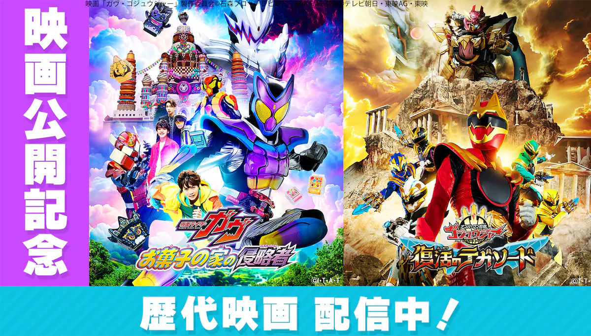 『仮面ライダーガヴ お菓子の家の侵略者』「ナンバーワン戦隊ゴジュウジャー 復活のテガソード』の公開を記念して、スーパー戦隊・仮面ライダー関連映画9作品がTVerで無料配信される。
