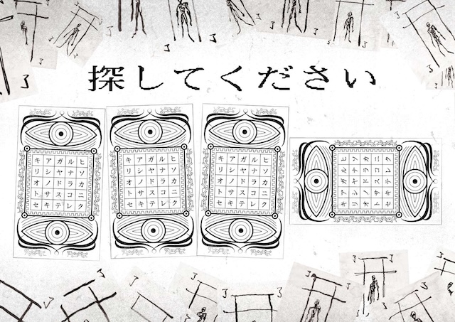 謎解きプレミア第2弾は、”東京のある場所“へと当選者を誘う未曽有のミステリー・バスツアー。謎解きから導き出されるのは、ミステリ ー・バスツアーの集合場所となる“東京のある場所”。 手がかりとなるのは、新たに登場した謎の資料。「探してください」という文字の下に、カタカナで謎のメッセージが書かれた奇妙なお札が4枚……。一番右手に見えるお札だけ角度が違うが、これも何かのヒントなのだろうか。