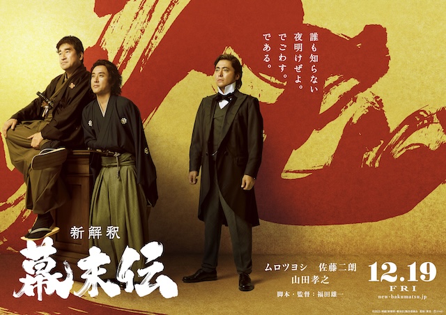 また、山田演じる桂小五郎のキャラクタービジュアルと、ムロ演じる坂本龍馬、佐藤演じる西郷隆盛、そして桂小五郎の3人が並んだビジュアルも公開。あわせて、本作に登場する13名のキャラクターが並べられたビジュアルも到着したが、ムロ、佐藤、山田以外の面々の顔は隠されている。フレッシュなキャストから、福田監督作品に出演してきた名優たち、そして物語に重厚感を与えるベテラン俳優まで、豪華な顔ぶれが集結するそうだ。さらなるキャストの発表は8月下旬を予定している。
