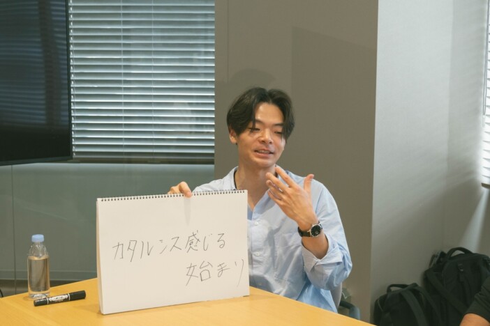 澤村:ただ「短いからラクに観られるよ」だけだとちょっと魅力が伝わらない気がしていて、「視始めから刺激が得られる」みたいな体験を推したいなと思っています。他のみなさんと大体一緒なんですけど、僕は「カタルシス感じる始まり」と書きました。作品を観たときに一番最後に感じられる気持ちよさ――爽快になれる瞬間みたいなものが、ショートドラマでは冒頭から味わえる、あるいはそれを“予感”できるというのが魅力かなと思っています。通常のドラマだと、人物関係の説明とか、世界観の理解にある程度時間がかかると思うんですが、ショートドラマはそういう前置きがほとんどなく、最初からすっと没入できる。そこが面白いところですね。