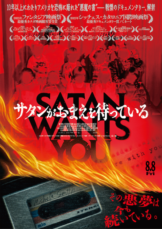 そして、どこか懐かしい映画テイストのファンポスターで人気を集めるコンビーフ太郎からも、『世界残酷物語』『食人族』などに代表される「モンド映画風」なオリジナルビジュアルが到着した。ミシェルの後ろにはサタンのイラスト、下部にはサタン教会創始者のアントン・ラヴェイも登場。「邪悪なのは、悪魔か人間かーー地獄の狂乱の真実に迫る、ハイパードキュメンタリー!」のキャッチコピーが添えられている。
