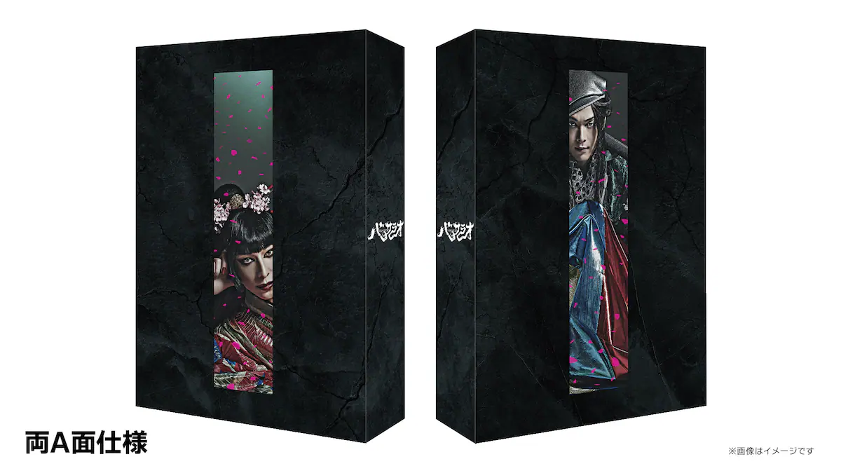 特典ディスク2には“大阪公演大千穐楽”の全編が収録され、舞台写真が満載のフルカラー64ページ豪華ブックレットに加え、ゲキ×シネポスターイメージ&公演時の宣伝ビジュアルによるビジュアルカードが同梱される。