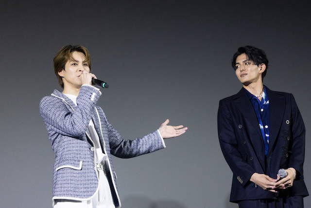 新島・式根島での撮影について、国上と西銘が劇中に登場する部屋で実際に2週間暮らしていたことが明かされると、会場からは驚きの声が。国上が「駿くんが夕飯を作ってくれたり、僕が朝ごはんを作ってあげたり。同棲じゃないですけど、そういう暮らしをしていました」と島での2人暮らしを振り返ると、西銘も「24時間つきっきりで2人でいたので、本当に仲良くなりました」としみじみ語った。