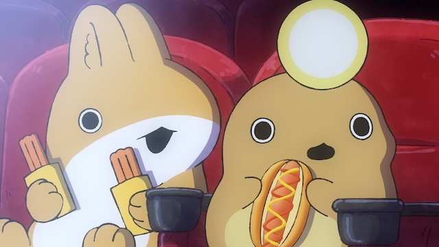 あわせて、先行カットとコラボジュアルが公開。先行カットでは、チュロスとホットドッグを頬張るうさめちゃんあんとこうちゃんをはじめ、スクリーンを前に目を輝かせる子ザメちゃん、威嚇をするキュルガなどが描かれている。また、コラボビジュアルでは、ほっぺたをくっつけ合う子ザメちゃんとキュルガの2ショットが確認できる。