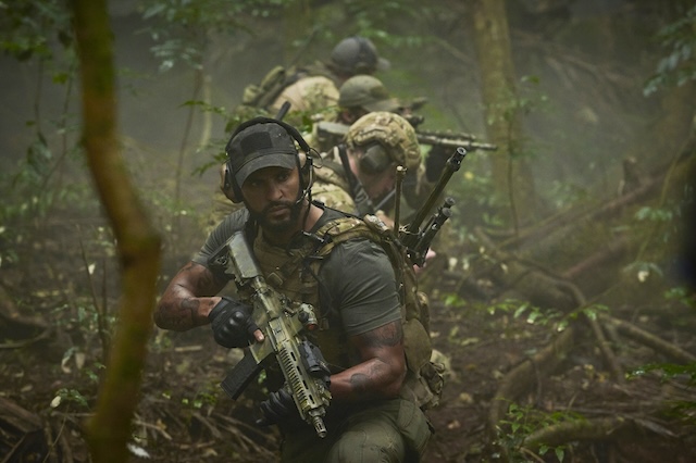 本作の舞台となるのは、反政府ゲリラが支配する南アジアの孤島と、戦地に赴く精鋭部隊を遠隔でサポートする軍人たちが待機する基地。元KGBの男に攫われたCIAのエージェントを救出すべく、特殊部隊であるデルタフォースの3人と、連絡係として放り込まれた新兵のキニー(リアム・ヘムズワース)は、密林の奥に佇む敵の本拠地を目指す。