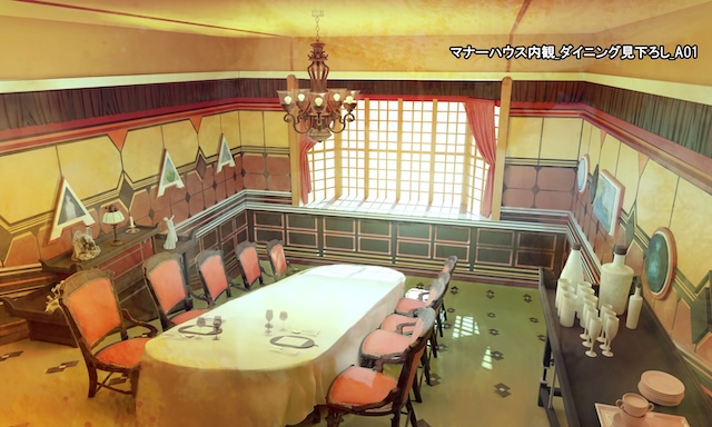 マッドハッターと三月ウサギとお茶会をするマナーハウスでは、“不条理さ”をどう空間で表現するかが大きなテーマとなった。「現実ではありえないけれど、ワンダーランドでは自然に感じられる形」を目指し、篠原監督と喫茶店で何時間も意見を交わした末に、“斜めの家”というギミックにたどり着いたという。「この作品において、物語としてのおもしろさと空間的な楽しさを両立するには、構造から狂わせる必要がありました」と語る。