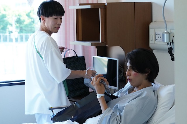 長年ホストをやってきて、自分たちが世間にどう見られているかということに関してはカヲルが一番よく分かってる。気を許している百々子の前で「カヲルって奴が、“このまま”いなくなればいいのに」と川原がこぼした本音が発端となり、自分のせいでカヲルが怪我をしたことに気づいた愛実。すぐに病院に駆けつけるも面会時間はとっくに過ぎており、2人が電話で言葉を交わすシーンは、柵越しの手繋ぎ、改札での別れに並ぶ名場面だ。それらのシーンに共通するのは、2人の間に恋を阻む障害物が存在しているということ。今回は病室の窓であり、そこからカヲルは愛実の姿を見下ろしながら、電話で心にもない言葉をかける。