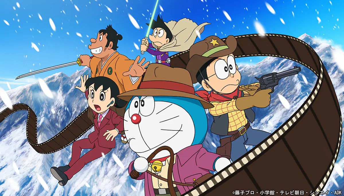 ドラえもんはトレジャーハンター、のび太は西部劇の正義の保安官、しずかちゃんはスパイ映画の敏腕エージェントとなって映画の世界に入りこみ、ハラハラドキドキの大冒険に乗りだす。ところが、一同が楽しんでいた映画の世界に、予想外の異変が発生。はたして、ドラえもんたちは“天空城”の秘宝を探し当て、映画の世界から脱出することができるのか。