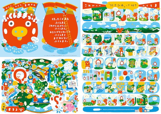 押山:失礼ながらまったく知りませんでした。ただ、以前からデザインを手がけている寄藤文平さんのイラストは好きだったんです。「ふくしままっぷ」のイラストは、線画の素晴らしさが印象的で、細かく見ていくと、本当にこれは大変な作業だなと思います。自分の出身地の本宮市はなんて書いているのかなと気になって探してみると、「福島県のへそ」と書かれていて、特徴を挙げるのに苦慮したのかなと思えたりして面白くて(笑)。