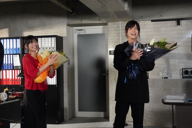 残すところあと2話となった本作。亡き父の復讐を果たすための“最後の戦い”が大詰めを迎える中、主人公・鳴木を演じる岩田とバディ・夜長を演じる蒔田が、ついに全てのシーン撮影を終えてクランクアップ。鳴木と夜長、バディとしての最後の掛け合いを無事に撮り終えた2人に花束が贈呈されると、現場は大きな拍手と歓声で沸き立ち、2人はそれぞれの思いを言葉にした。