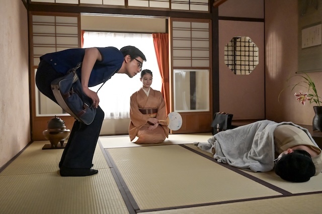 翌日、のぶは登美子(松嶋菜々子)に茶道を習っていた。落ち着いた時間が流れる中、訪ねてきたのは、あの手嶌(眞栄田郷敦)である。現代日本を代表する漫画の巨匠として知られる手嶌が、柳井家の門を叩いたこと自体が大きな驚きだった。のぶが点てた抹茶を口にした手嶌は、そのまま居心地のよさからか、眠りに落ちてしまう。そこへ帰宅した嵩が目にしたのは、家の中でぐっすり横になる手嶌の姿だった。思わず声を上げる嵩。その声で目を覚ました手嶌は、嵩に向き直り、驚きの依頼を口にする。
