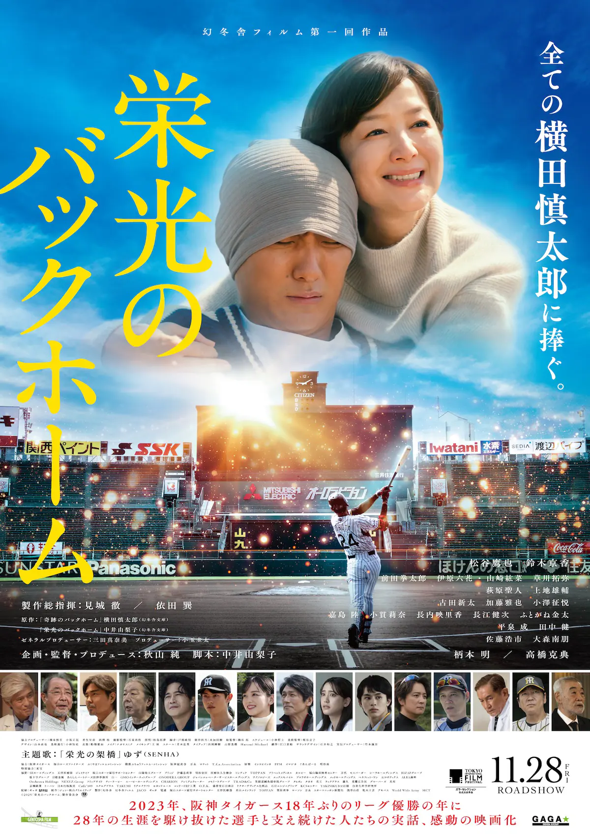 本作は、2013年に阪神タイガースにドラフト2位で指名され、2014年に入団した横田慎太郎選手の自著『奇跡のバックホーム』(幻冬舎)と、彼が2023年に28歳でその生涯を閉じるまで、母・横田まなみら家族と共に闘い続けた人生の軌跡を描いたノンフィクション『栄光のバックホーム 横田慎太郎、永遠の背番号24』(幻冬舎)を映画化したもの。若きホープとして将来を期待されるも、21歳で脳腫瘍を発症し、引退を余儀なくされた横田選手が最後の試合で魅せた“感動のラストプレー”は、野球ファンのみならず、多くの人々の心に刻み込まれた。