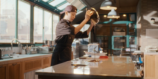 また、本編初出しのカットも公開。壮亮とハナの、“恋の練習相手”の距離感がもどかしくもどこか愛おしい2人のさまざまなシーンとあわせ、寛とアイリーンをはじめ、壮亮の従兄弟であり、仕事のパートナーとしても壮亮を支える藤原孝(成田凌)や、ル・ソベールを愛情深く支える、チーフショコラティエ・川村元美(伊藤歩)、ハナの“視線恐怖症”を理解したうえで誰よりもハナを気にかけるル・ソベールのオーナー・ショコラティエ・黒岩健二(奥田瑛二)、壮亮に厳しく接する父、双子製菓の会長・藤原俊太郎(佐藤浩市)らの姿が捉えられている。