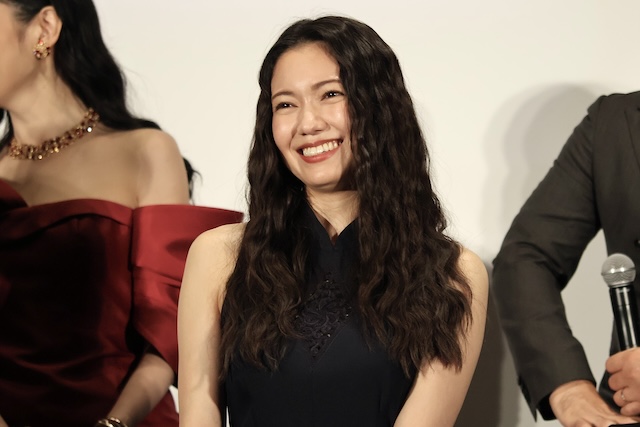 神社の巫女・江藤樹里を演じているのは浜辺。80年代の渋谷を再現したオープンセットについて問われると「すごかったですよ。八分坂の坂も実際にありますし、お店もたくさんありますし、自動販売機もたくさんシールが貼られて、ペイントもされていて……。どこからどう見てもセットとは思えない。感動しました」とコメント。菅田も「あれだけの規模のセットは見たことがないです」、「あの景色でお芝居をさせていただくと、グッと(芝居の)温度が上がります。フジテレビさんの本気に感謝しております」と述べた。