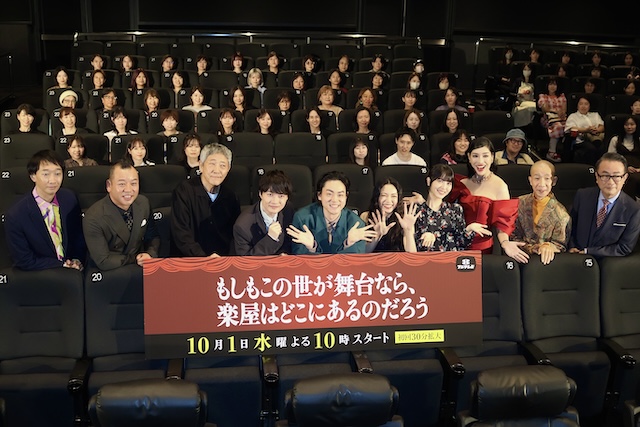 10月1日よりフジテレビ系で放送がスタートする水10ドラマ『もしもこの世が舞台なら、楽屋はどこにあるのだろう』の第1話完成披露試写会が9月21日に丸の内ピカデリーで行われ、25年ぶりに民放ゴールデン・プライム帯連続ドラマの脚本を手がける三谷幸喜、主演の菅田将暉をはじめ、二階堂ふみ、神木隆之介、浜辺美波、小林薫、アンミカ、西村瑞樹(バイきんぐ)、大水洋介(ラバーガール)、ひょうろくが登壇した。