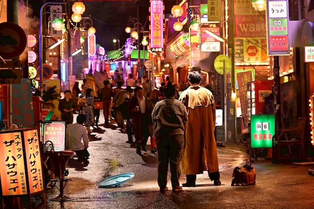 物語の中心に立つ4名のキャラクターについてざっくりと記してみたものの、ここから何が生まれるのか、うまく想像できない。さらにここに、久部が訪れるジャズ喫茶のマスター・風呂須太郎(小林薫)や純情派の警官である大瀬六郎(戸塚純貴)、WS劇場の用心棒のトニー安藤(市原隼人)、姉御肌のダンサー・パトラ鈴木(アンミカ)、久部を翻弄する案内所の女性・おばば(菊地凛子)、WS劇場の看板ダンサーのいざなぎダンカン(小池栄子)などなど、多くの個性派キャラクターが絡んでくる。頭に浮かぶのは……なかなかに混沌とした物語だ。