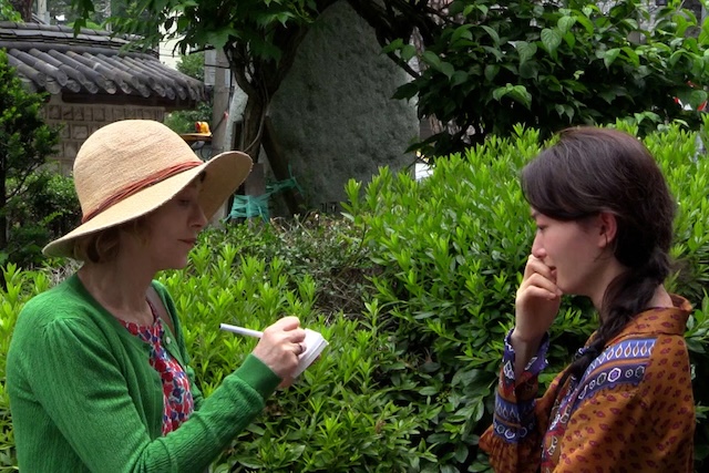 加えて、公開された場面写真では、ユペール以外にもここ数年来のホン・サンス作品常連となる俳優たちの顔ぶれが並ぶ。