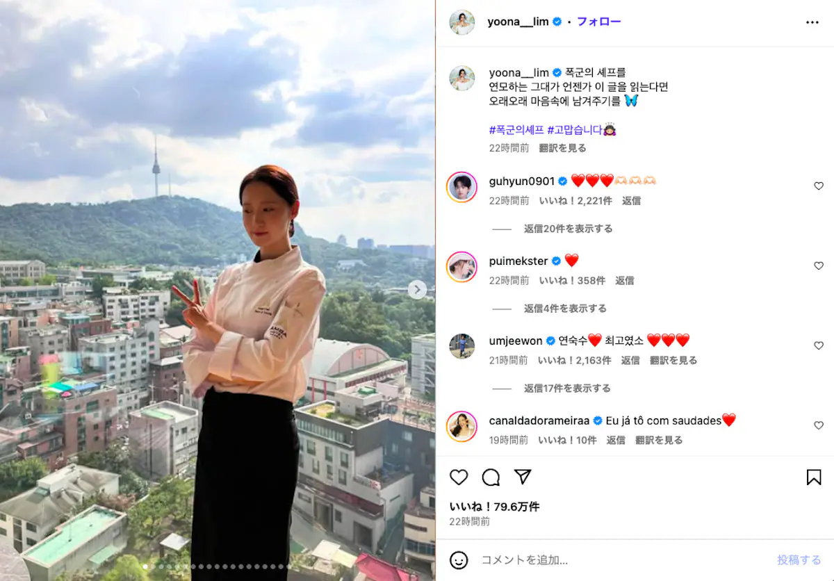少女時代のメンバーで、女優としても活躍するイム・ユナが公式Instagramを更新し、先日最終回を迎えたドラマ『暴君のシェフ』のオフショットを公開した。