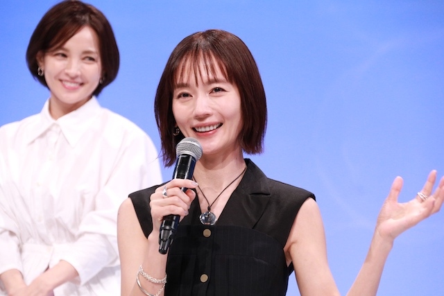 中村ゆりが演じるのは、絵本作家の御厨真琴。草彅と共演した印象を聞かれた中村ゆりは「学生の頃からテレビで見ていたスターのイメージと全然違って、剛さんがいらっしゃるだけで現場が華やかで明るくなって笑いが絶えなかったです。何よりもこんなに紳士でレディーファーストな男性が日本にいるのかというくらい、細かいことに気づいて褒めてくださる。本当に優しくてイタリア人かなと思うくらい」と絶賛すると、草彅が照れながら「パスタ食べますか?」とおどける一幕もあった。
