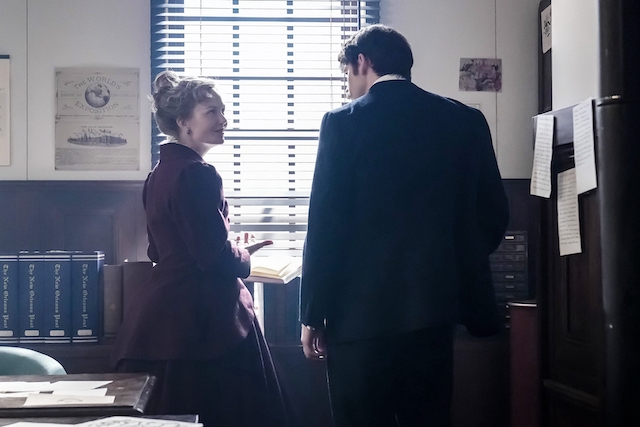 気になるヘブンとは「二人が出会うまで1875日」と第1週に続いてテロップでアナウンスされた。出会う日は着々と近づいている。その頃、ヘブンはニューオーリンズの新聞社の文芸部で働いていた。企画会議で日本に行く企画が上がり、同僚のイライザ(シャーロット・ケイト・フォックス)から「ふたりで行きませんか」と誘われる。いよいよ日本へ? でも女性連れ?