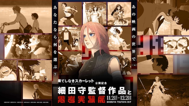 さらに今年5月に開催され大反響を呼んだ「思考実験展」が、『果てしなきスカーレット』と細田監督の過去作と初コラボレーション。「細田守監督作品と思考実験展」として、映画公開と同日の11月21日から、渋谷で期間限定開催される。チケットは10月18日12時より販売開始となる。